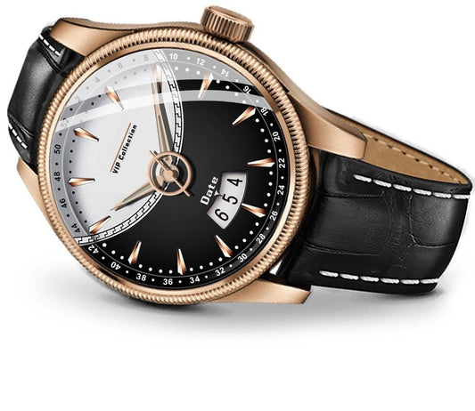 3D Glass Date Display Dial Leather Strap Analog Watch