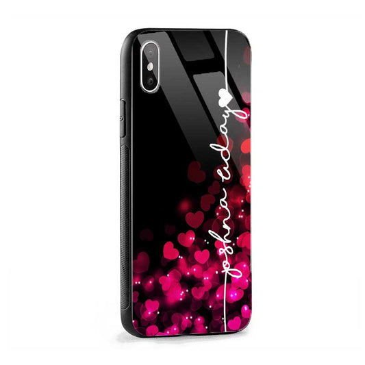 Glossy Protective Case With Black Red Hearts Name