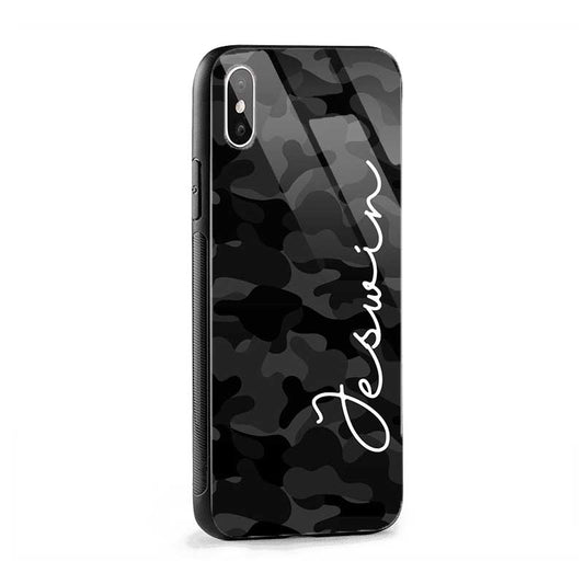 Glossy Protective Case With Black Grey Camouflage Name