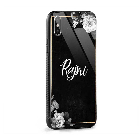 Glossy Protective Case With Black Floral Frame Name