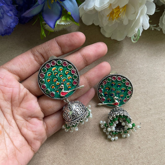 Sold outGreen Peacock Oxidised Earring