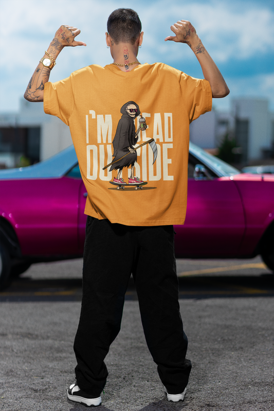 I'M Dead Outside Oversized Golden Yellow Front and Back Printed T-shirt Unisex