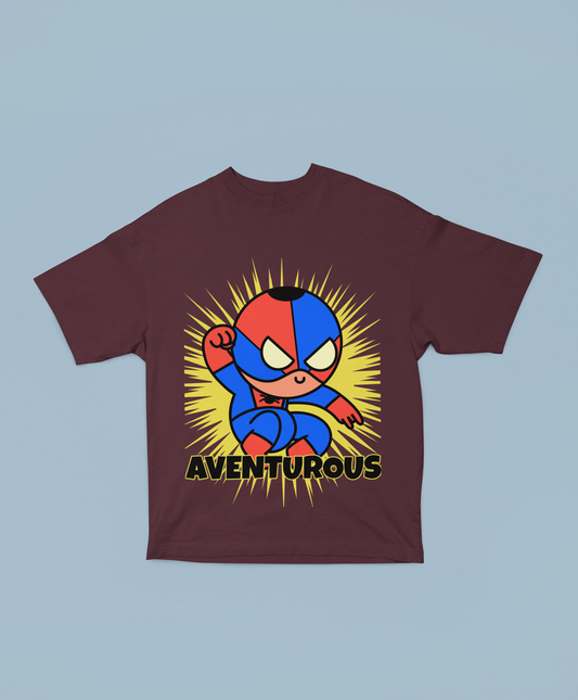 Adventurous Oversized Maroon Front and Back Printed T-shirt Unisex