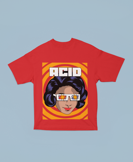 Acid Oversized Red Front and Back Printed T-shirt Unisex