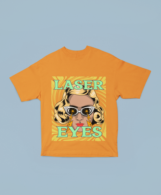 Laser Eyes Oversized Golden Yellow Front and Back Printed T-shirt Unisex