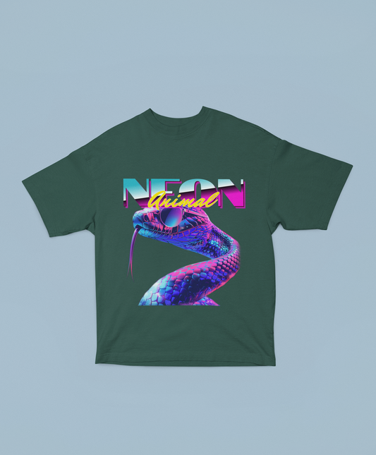 Neon Animal Oversized Petrol Blue Front and Back Printed T-shirt Unisex