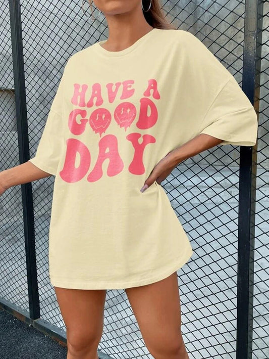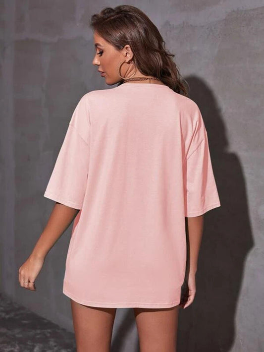 Popster pink Printed Cotton Round Neck oversized Fit Half Sleeve Womens T-Shirt