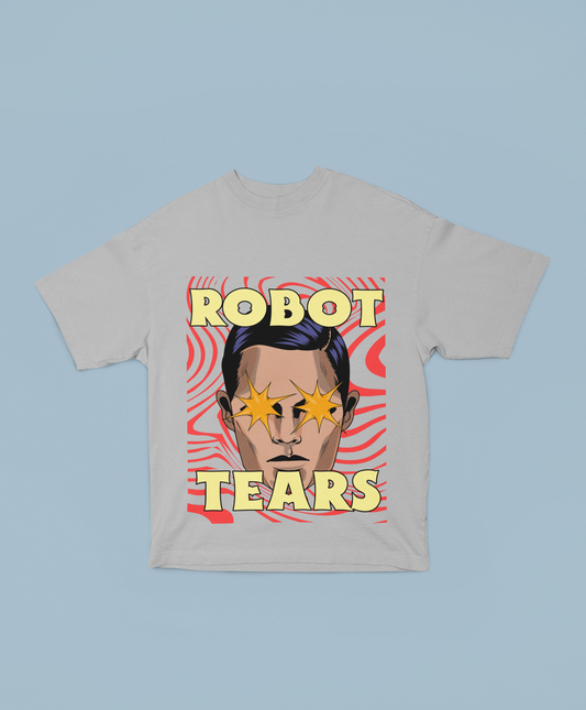 Robot Tears Oversized Gray Melange Front and Back Printed T-shirt Unisex