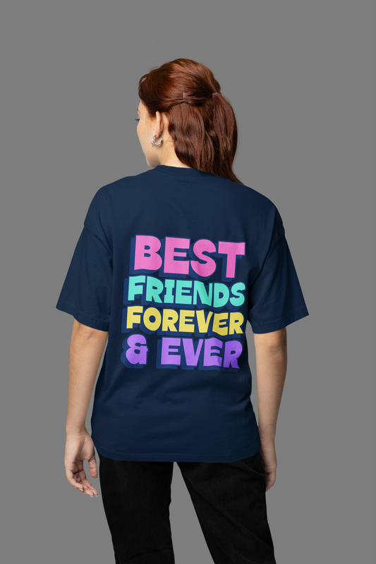 Best friends forever & ever Oversized Navy blue Front and Back Printed T-shirt Unisex
