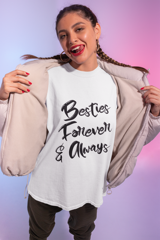 Besties Forever And Always Oversized White Printed Tshirt Unisex