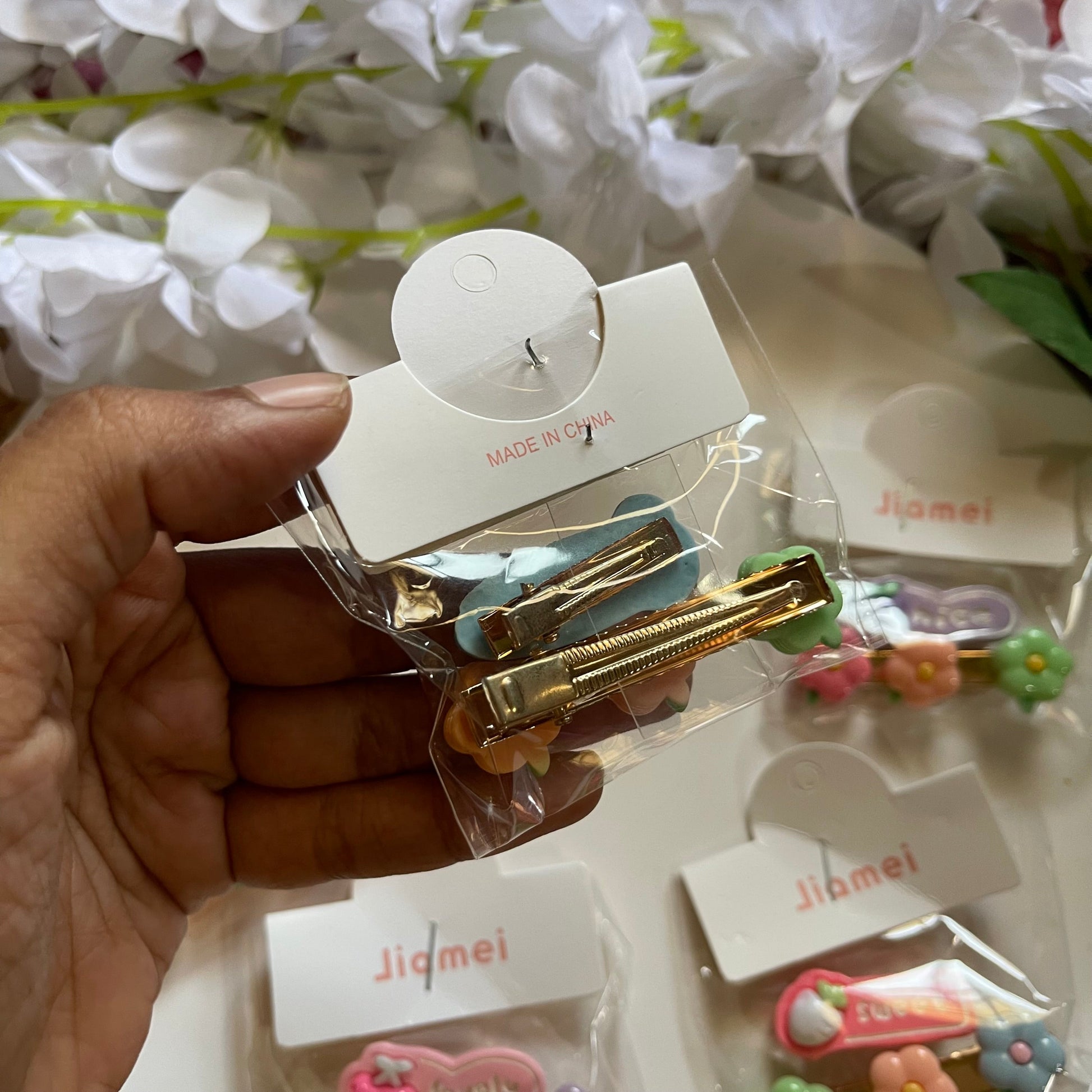 It has one Floral Alligator Clip and One Quote Alligator Clip