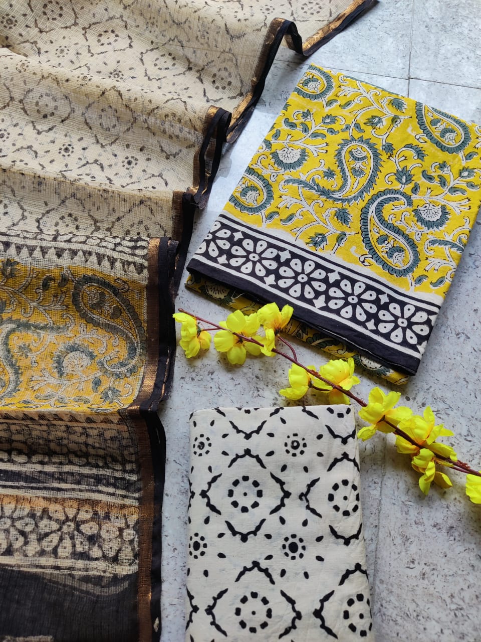 Elegant Block Printed Cotton Suit Set paired with a beautiful Kota Doria Dupatta. ย