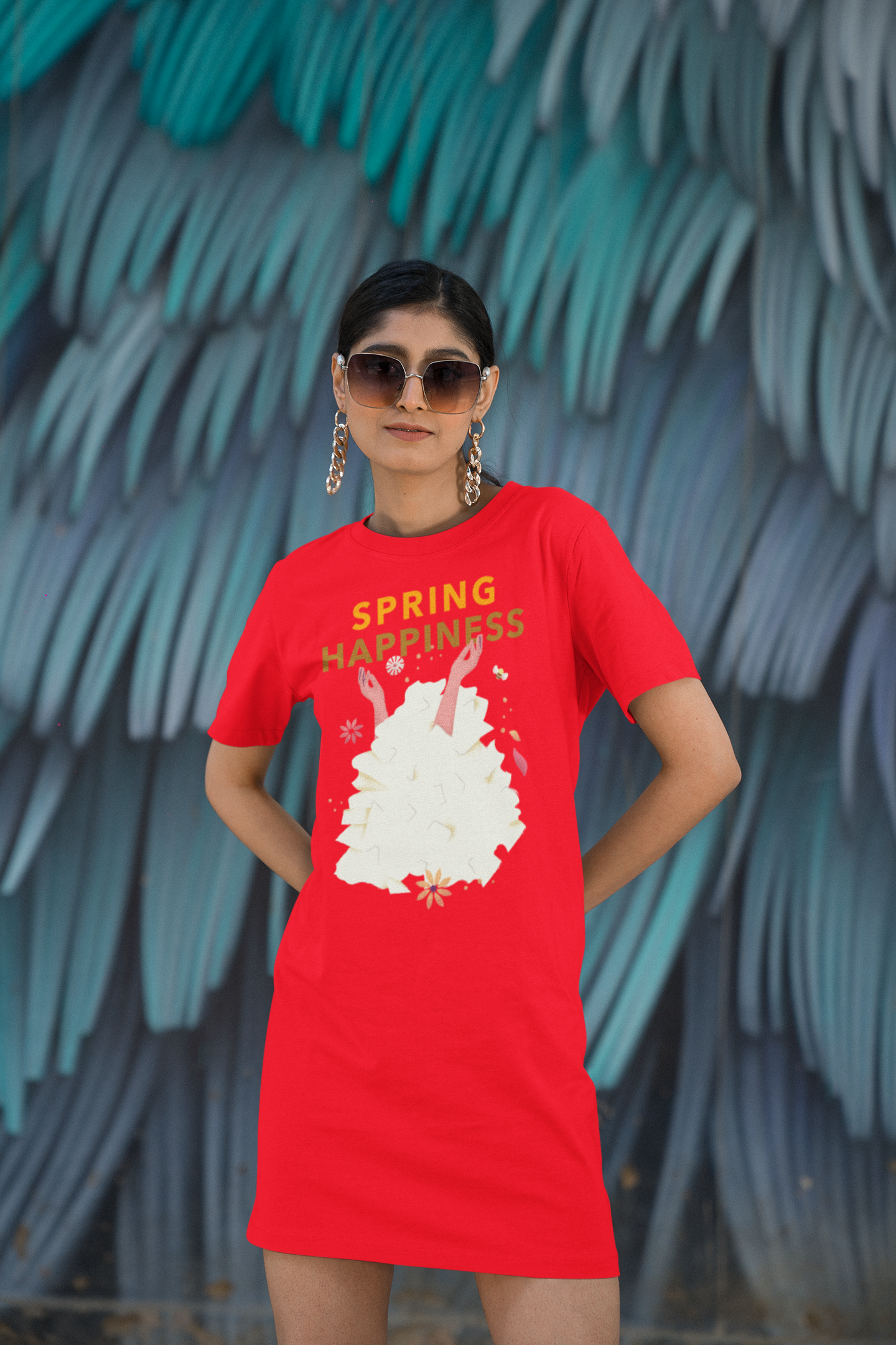 Spring happiness Printed red T-shirt Dress
