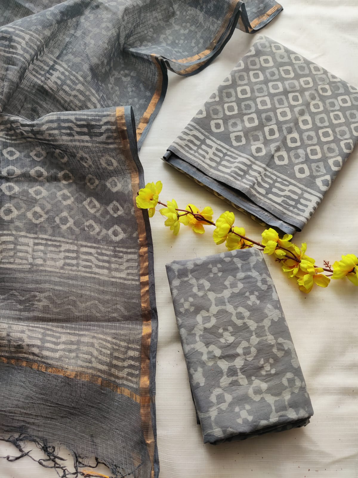 Elegant Block Printed Cotton Suit Set paired with a beautiful Kota Doria Dupatta.